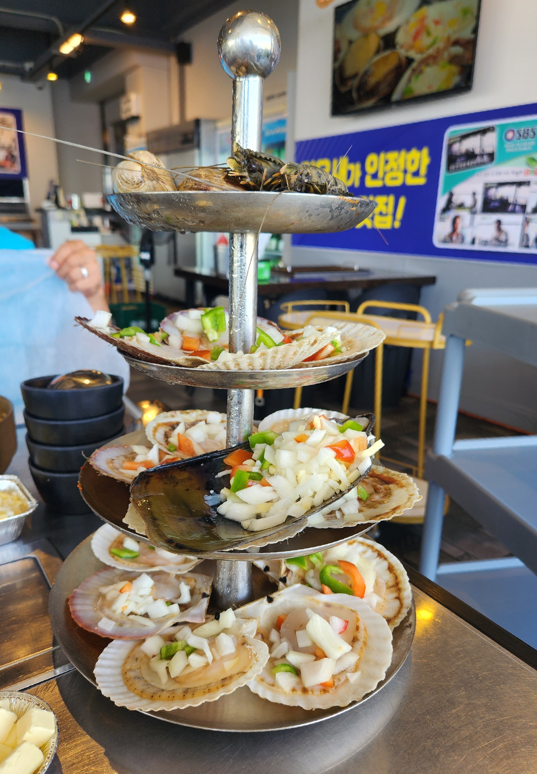 가장 먼저 3단 조개구이 먼저 나왔는데요.