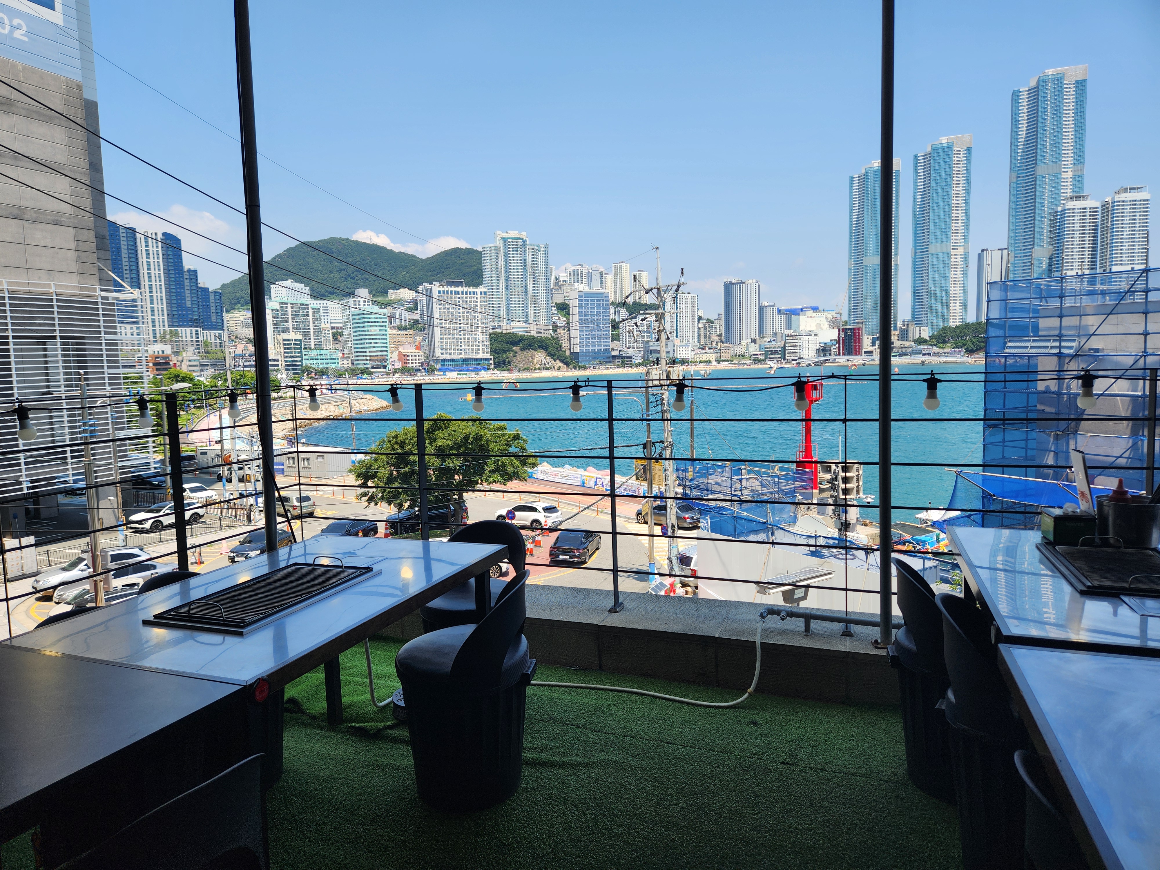 테라스처럼 있는 좌석이 송도 해수욕장이 바로 보여서 오션뷰 즐겨주며 먹기 딱! 좋았는데요. 외부랑 뚫려있어도 하나도 안 덥고 시원~해서 좋더라고요.